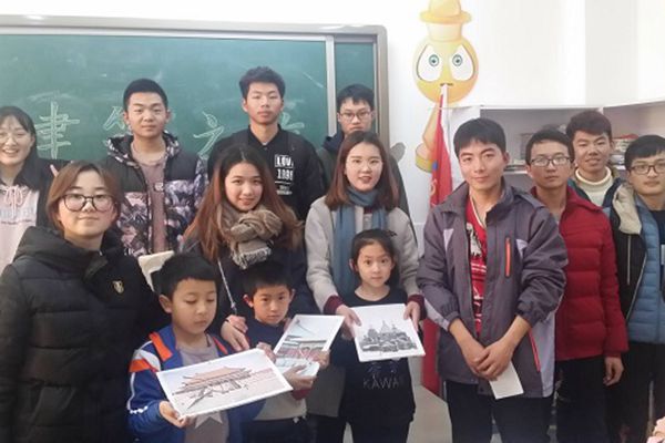活动当天,队员们首先组织小朋友们画出自己心中的最美房子,让小朋友们发挥想象,并选了两个小朋友给大家介绍自己画出的漂亮房子。之后以ppt图片展示加讲解的方式给小朋友们介绍一些有特色的建筑,从游戏里的“鲁班”引出古时建筑巨匠鲁班,更加引起了小朋友们的兴趣点,队员们拿出提前准备好的建筑拼图,小朋友们六个人一组对照原图进行拼装,他们齐心协力还原了一副副建筑图片,整个宣讲过程小朋友们都展现出饱满的热情投入到每一个活动环节,现场气氛热烈。