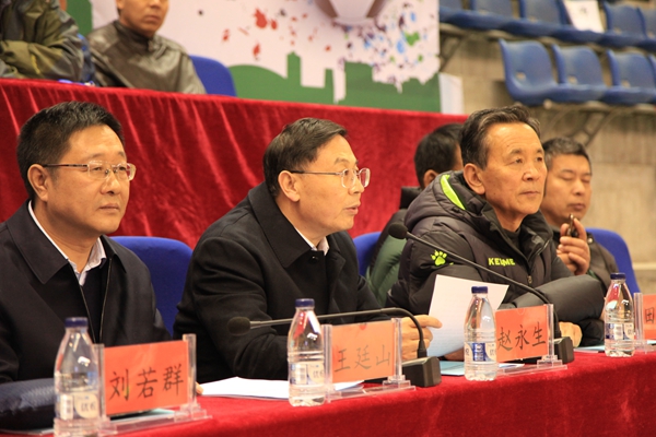 王廷山在讲话中强调,组织开展大学生足球竞赛活动,是贯彻落实党的十九大精神、大力推进校园足球、努力践行“强化体育课和课外锻炼”、切实加强学校体育、增强学生体质的有效措施。希望全体运动员珍惜机会、加强交流,赛出风格、赛出水平,希望全体裁判员恪尽职守、规范工作,保证赛场的公平公正。希望全体工作人员积极工作、热情服务,保障本次比赛的顺利进行。
