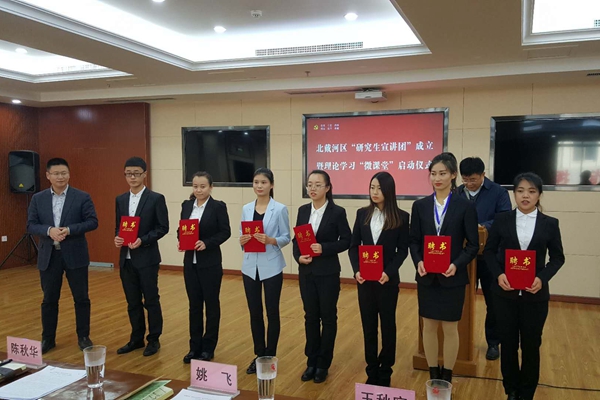 启动仪式上,北戴河区委宣传部为“研究生宣讲团”授旗,并为12名“研究生宣讲团”成员颁发聘书。宣讲将以“微讲堂”授课为主,按照因地施教、因人施教的原则,安排精细精致的理论宣讲活动,既充分利用了工作间隙,又保证了听课人员随到随听,具有时间短、灵活机动的特点。启动仪式结束后,宣讲团成员在北戴河第三中学初三年级进行了宣讲。