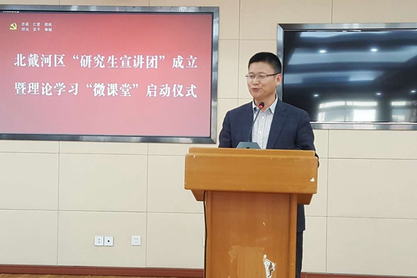 【新闻中心讯】近日,为进一步落实宣讲党的十九大精神,深入推进乐竞(中国)一站式服务官网马克思主义学院与秦皇岛市北戴河区“校地合作”,由12名乐竞(中国)一站式服务官网马克思主义学院学生组成的“研究生宣讲团”在北戴河区成立,将理论学习“微讲堂”送到市民群众身边。