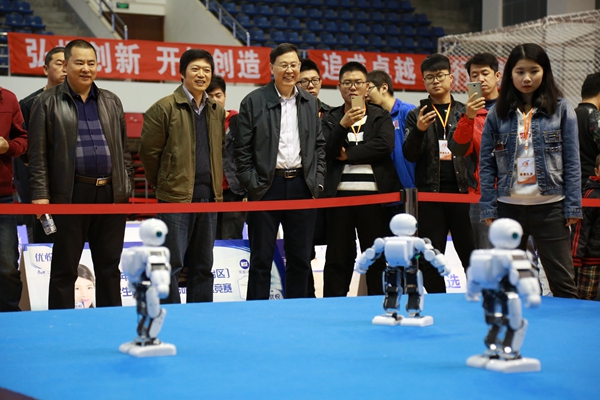 与会领导观摩机器人大赛现场(钤旭/摄)