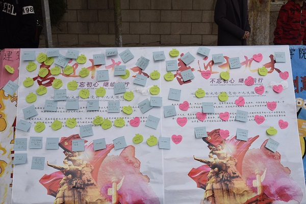 留言板贴满了学生们对党的祝福