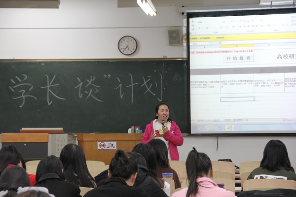 【新闻中心讯】11月2日下午4点,文法学院研究生会主办的“学长谈”朋辈互助活动在四教414室正式开讲。本次活动旨在使研一新生在与学长学姐的交流中加深对科研与学习的了解。本次讲座的主讲人有:2017年国家奖学金获得者刘畅和卢冰,曾参与多项课题的刘永金以及已通过司法考试的刘月。此次讲座由学生科长金宏妍主持,文法学院2017级研究生参加。