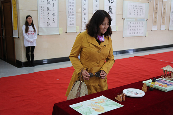 多样的作品吸引了前来观看展览的老师(买瑶璇摄)