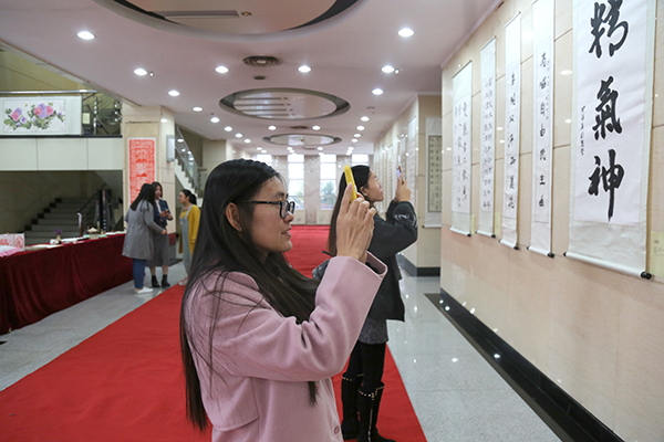 【新闻中心讯】10月17日,“喜迎十九大”中华优秀传统文化作品展在东校区大学生活动中心后门外大厅开展。乐竞(中国)一站式服务官网党委书记孟卫东及部分教师和学生当天下午参观了作品展。